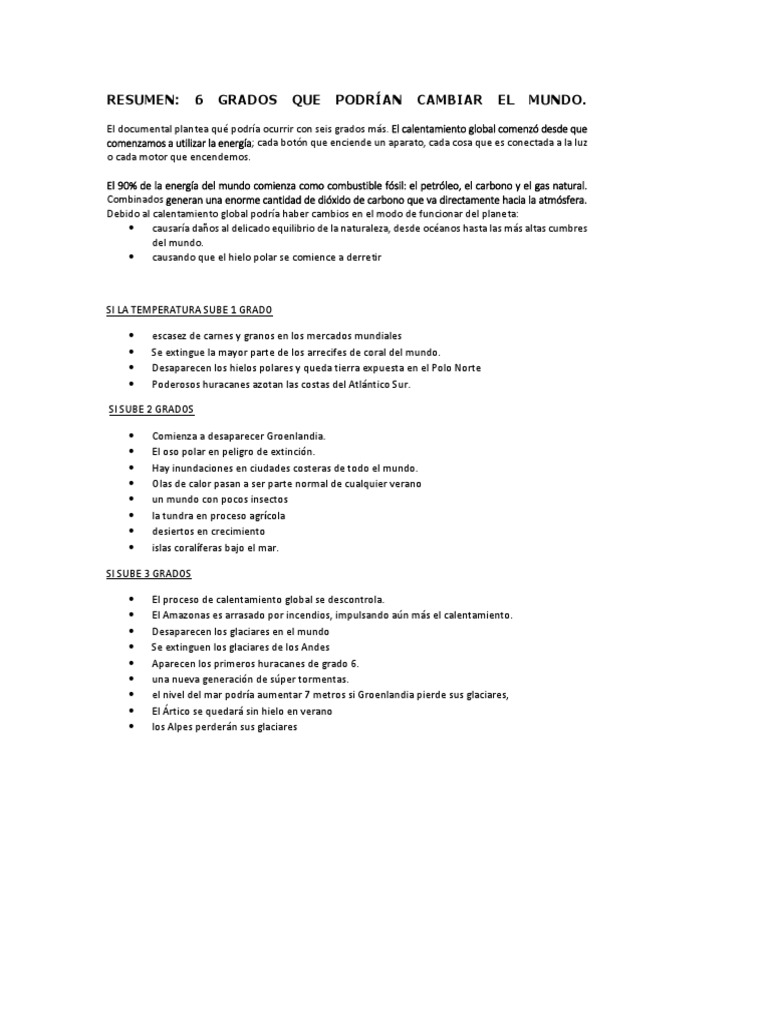 Resumen Del Documental Seis Grados Que Podrian Cambiar El Mundo